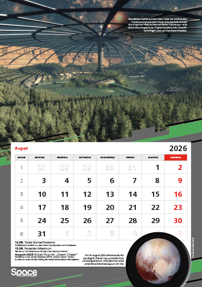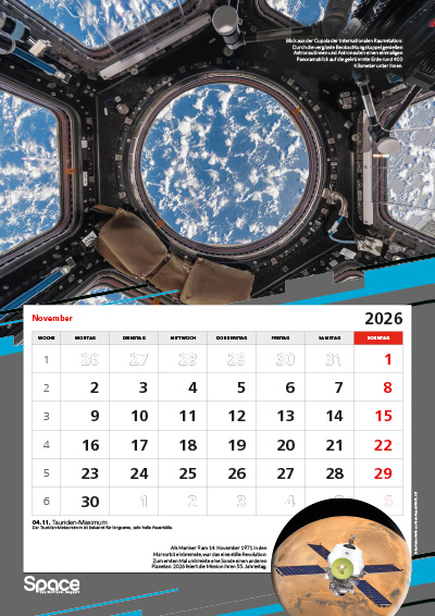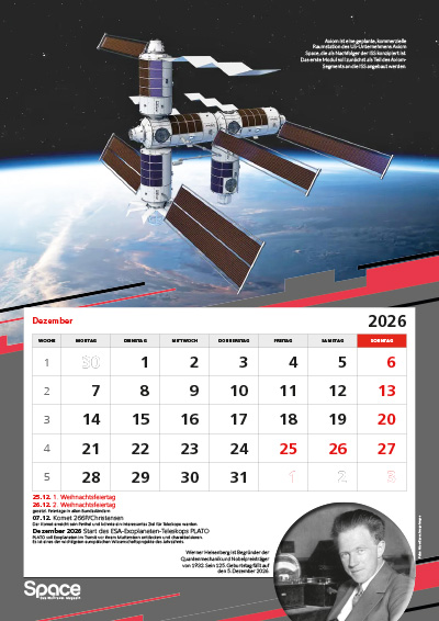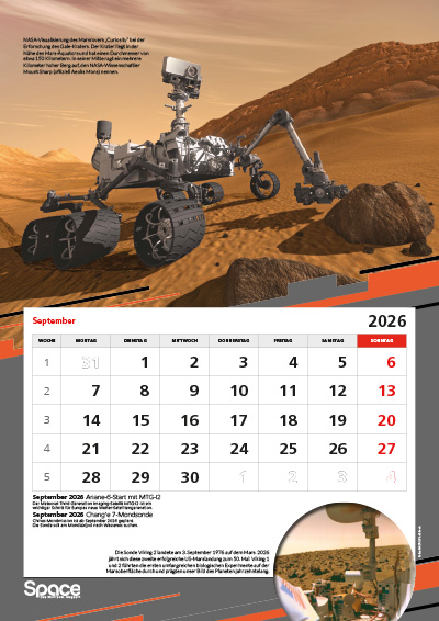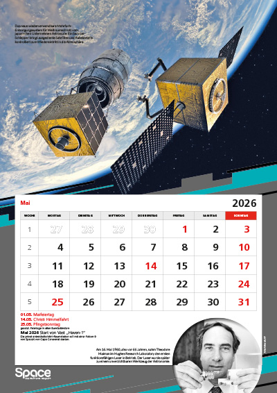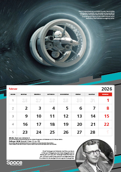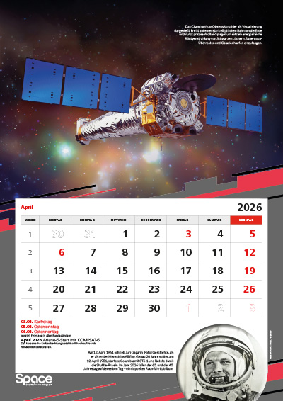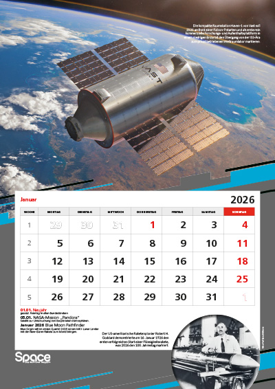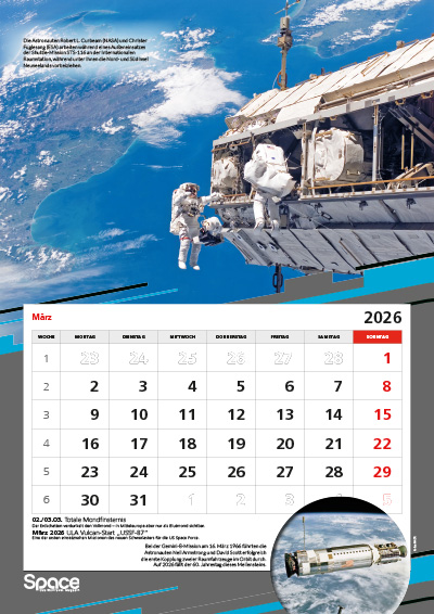 Der große A3-Wandkalender mit spektakulären Bildern zur Raumfahrt, Terminen, Hintergründen und besonderen Jahrestagen.