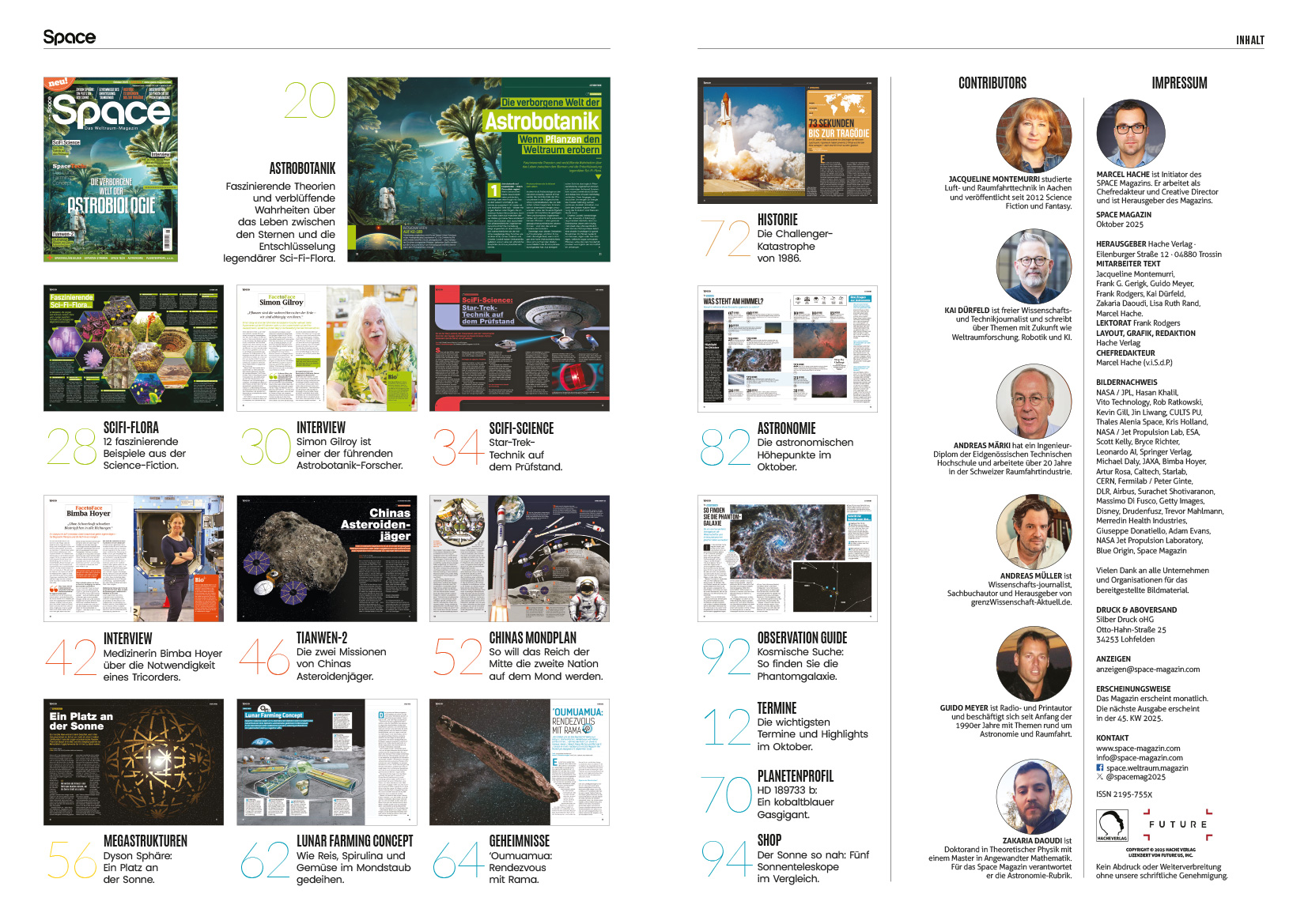 Was all diese Themen verbindet, ist die Kraft unserer Vorstellung: die Fähigkeit, über das Bekannte hinauszudenken – und manchmal erste Schritte zu wagen, die Science-Fiction zur Science-Fact machen. Diese Ausgabe lädt Sie ein, genau dort einzutauchen: Zwischen Fantasie und Forschung, zwischen Sternengärten und Sonnenmaschinen. Willkommen auf einer Reise in die Zukunft, die längst begonnen hat.